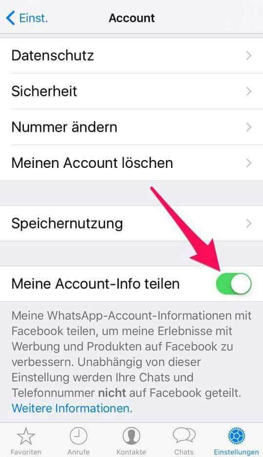 Als weiterführende Ergänzung ist unser beigefügtes Bild dienlich. Darauf ist ersichtlich, wo genau diese neuen AGBs versteckt sind und wie ihr diese durch das Entfernen des bereits gesetzten Häkchens abgewählt. Darauf heißt es nämlich so schön: „Meine WhatsApp Account Informationen mit Facebook teilen, um meine Erlebnisse mit Werbung und Produkten auf Facebook zu verbessern.“ Wie bereits bekannt sein sollte, ist Facebook gern auf Daten Sammelwut aus, sodass deren Werbung zielt umgesetzt wird. Bereits in der Vergangenheit konnten wir erwähnen, was in Facebook beachtet werden muss, sodass ihr auch auf Facebook sämtliche Häkchen entfernt und euer Account sicher und solide bleibt.